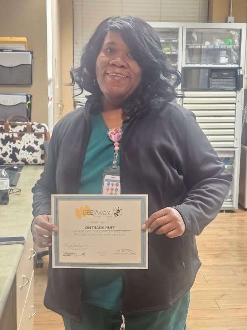 Stephens County Hospital is pleased to recognize Ontraus Ruff as the recipient of our first BEE Award. Ontraus was selected via a nomination process for providing high-quality patient care.
