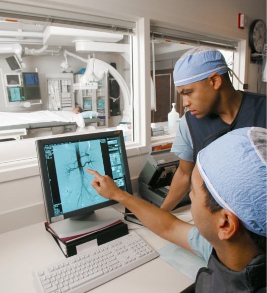 Nuclear Medicine is a unique imaging modality that uses cameras to detect radiation coming from within the body. To accomplish this, patients receive “radiopharmaceuticals”, a combination of a particular isotope and a drug that is attracted to a specific part of the body where disease or an abnormality may be present. These radiopharmaceuticals are blended uniquely for each procedure that is ordered and are given through injection or inhalation. A series of pictures are then taken by special gamma cameras that detect the radiation coming from the radiopharmaceutical inside the body. Advanced computer technologies process these images and display them in a way that the Radiologists can interpret. All exams are performed by a Certified Nuclear Medicine Technologist.